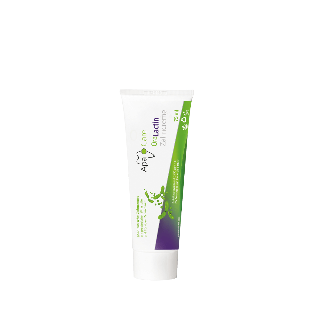 ApaCare OraLactin pre- ja postbiootiline hambapasta toetab ja säilitab tervislikku suu mikrofloorat. Igapäevaseks tervisliku suu mikrofloora stabiliseerimiseks ja taastamiseks. Hea suu mikrofloorale Pre- ja postbiootiline Hüdroküapatiitiga (remineraliseeriv) Fluoriidiga (1450ppm F) Igapäevaseks kasutamiseks
