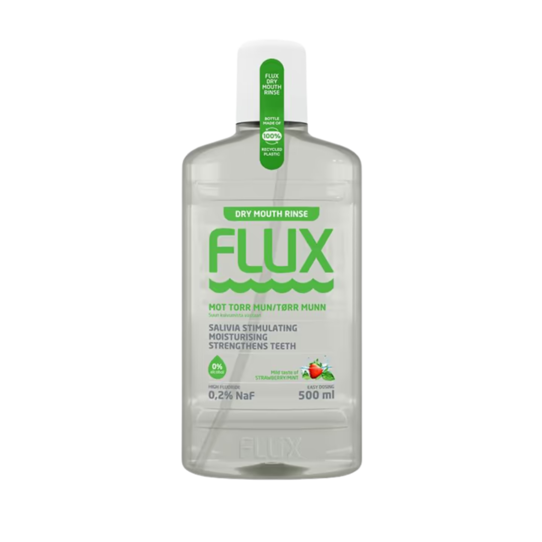 Flux Dry Mouth Rinse on suuloputusvahend neile, kes tunnevad suus kuivust või kellel on suukuivusest tingitud ebamugavustunne. Flux Dry Mouth Rinse stimuleerib sülje tootmist ning niisutab ja libestab limaskesta. Lisaks ennetab see kaarieset tänu fluorile (0,2% NaF). Vedelikul on mahe maasika- ja piparmündimaitse. Aitab suu kuivuse vastu Tugevdab hambaid Sisaldab […]