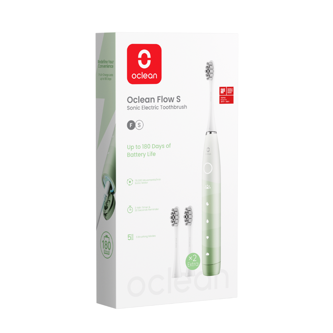 Oclean Flow S on Sonic elektriline hambahari, millel on hämmastav 180-päevane aku kasutusiga. Oclean Flow S hambaharjal on 5 režiimi, kaheminutiline nutikas taimer ja 30-sekundiline meeldetuletusfunktsioon hoolikaks ja tõhusaks harjamiseks. 1 käepide (5 režiimi) 3 otsikut Laadija (5h laadimine) Aku kuni 180 päeva