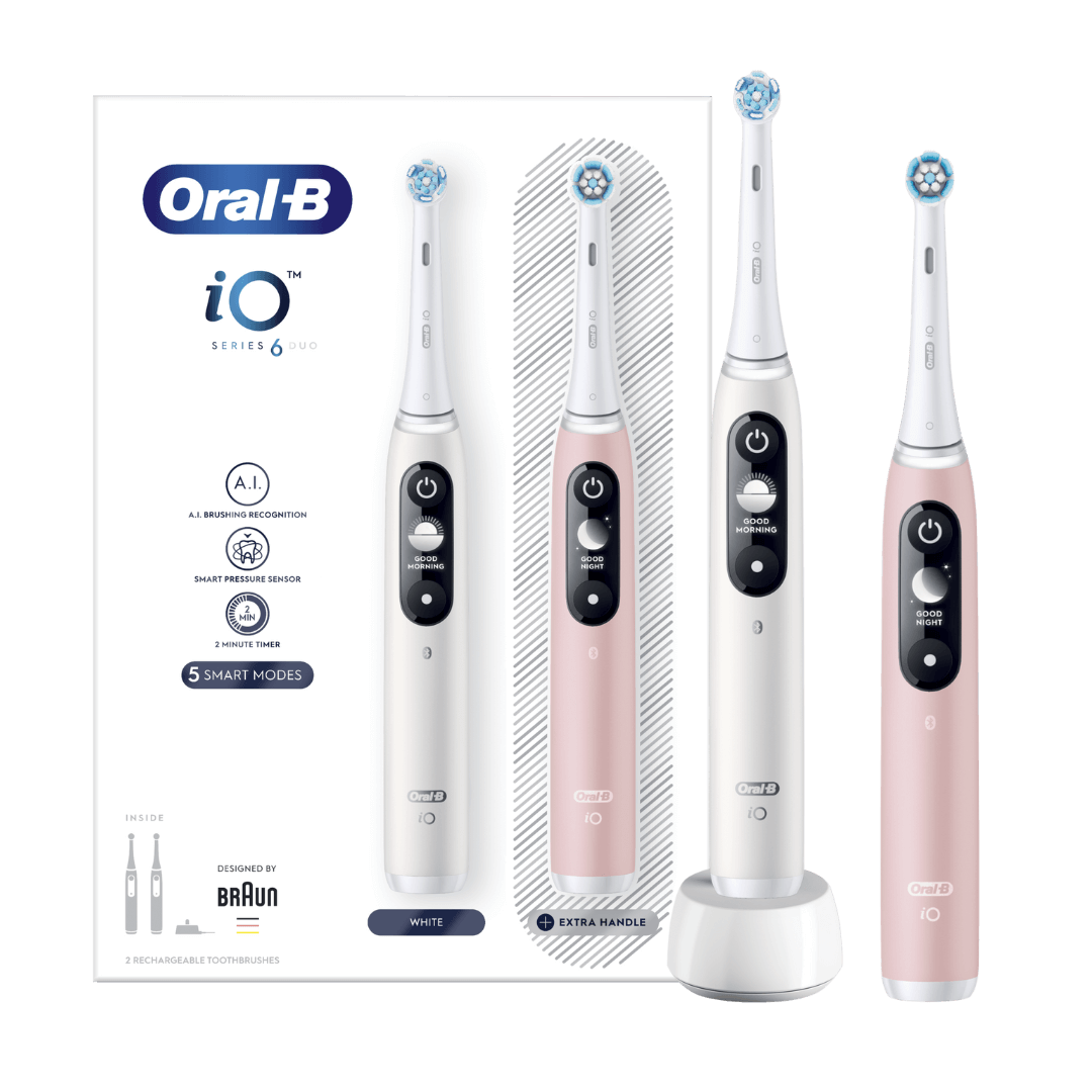 Tänu revolutsioonilisele magneetilisele iO-tehnoloogiale on Sinu hambad tervemad, valgemad ja puhtamad kui eales varem. 2 käepidet (5 režiimi, must-valge ekraan) 1 otsik (Keskmine tugevus) 1 otsik (Pehmed harjased) Laadija Proovi 30 päeva (kampaania)