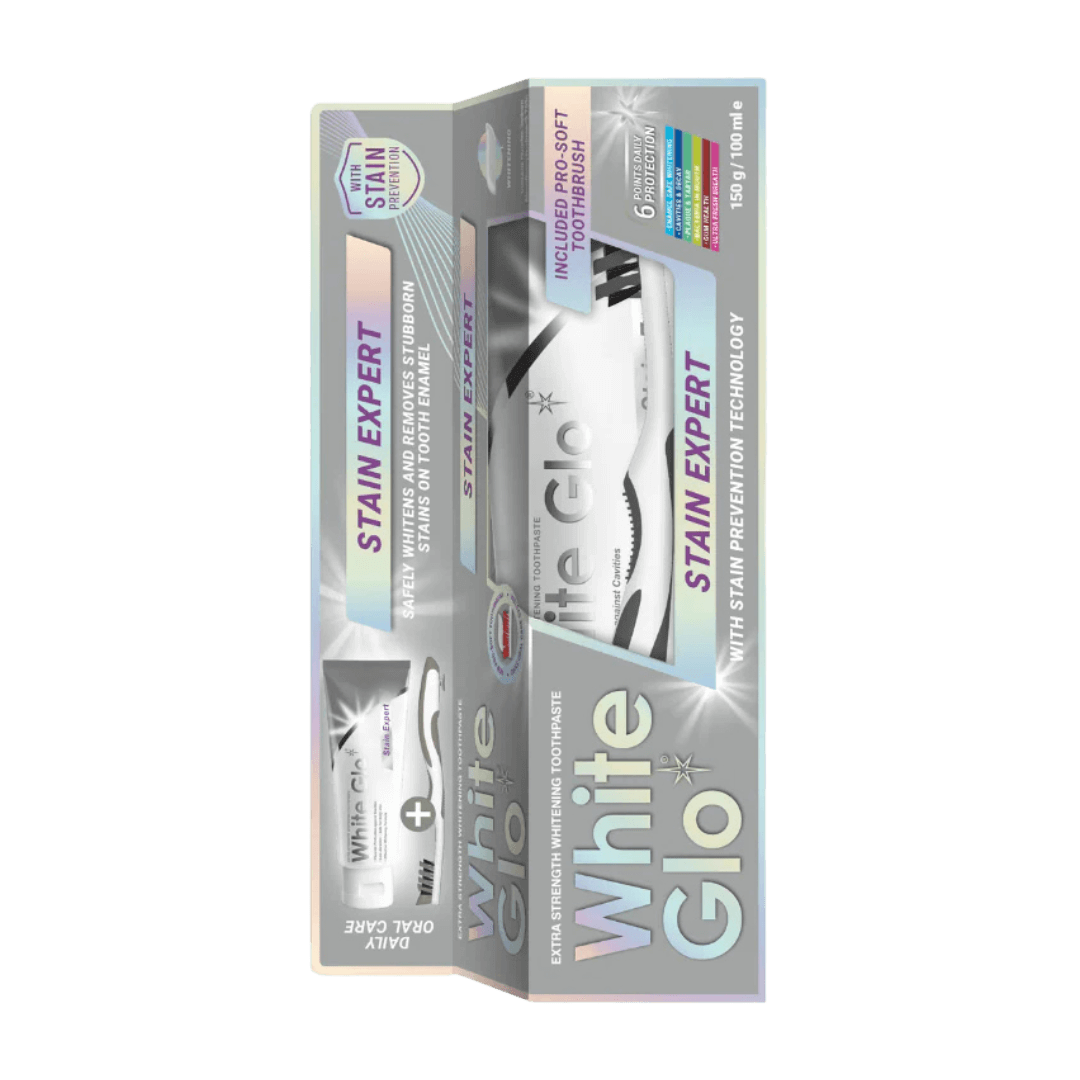 White Glo Stain Expert valgendav hambapasta on tõhus igapäevaseks kasutamiseks mõeldud hambapasta, mis eemaldab igapäevasest toidust ja joogist tekkivad hammaste pinnaplekid ning aitab ennetada uute plekkide teket. Igapäevaseks suuhoolduseks Õrn ja tõhus puhastus Valgendav Sisaldab fluoriidi 1000ppm F Kaasa käsihambahari